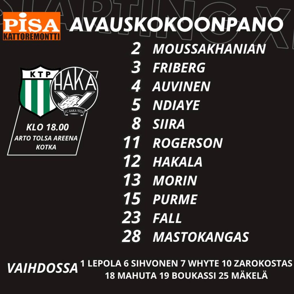 FC Haka kävi maanantai -iltana vieraisilla Kotkassa, mistä se taisteli upean 1-2 -voiton äärimmäisen tärkeässä Veikkausliiga -ottelussa. Voitolla koskilaiset nousivat yhdeksänneksi ja tasapisteisiin kotijoukkue KTP:n, sekä myös Ilveksen kanssa.