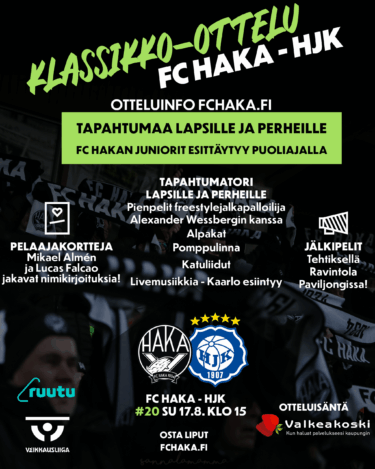 Otteluinfo: FC Haka – SJK ma 25.8. klo...