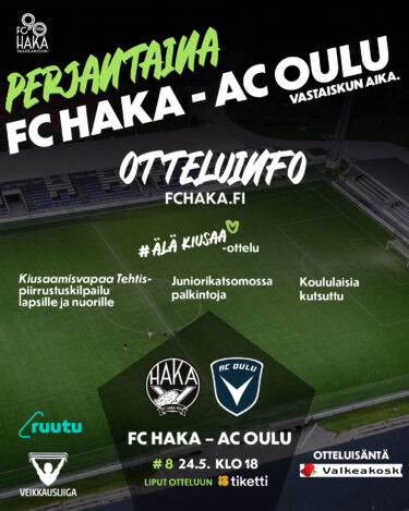 Otteluinfo: Perjantaina FC Haka ja AC Oulu...