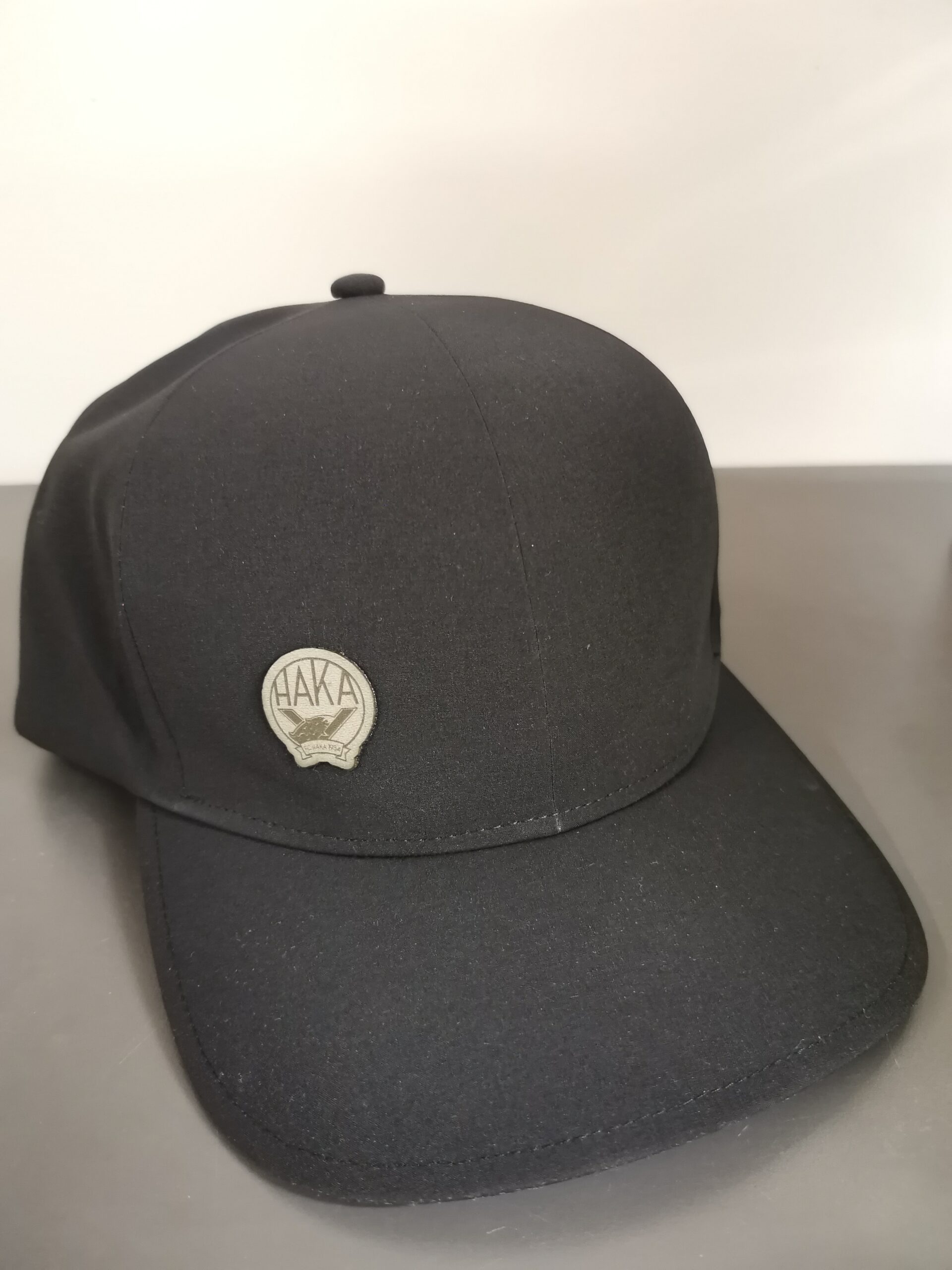 Kaarevalippainen lippalakki, jossa nahkainen Hakan logo.