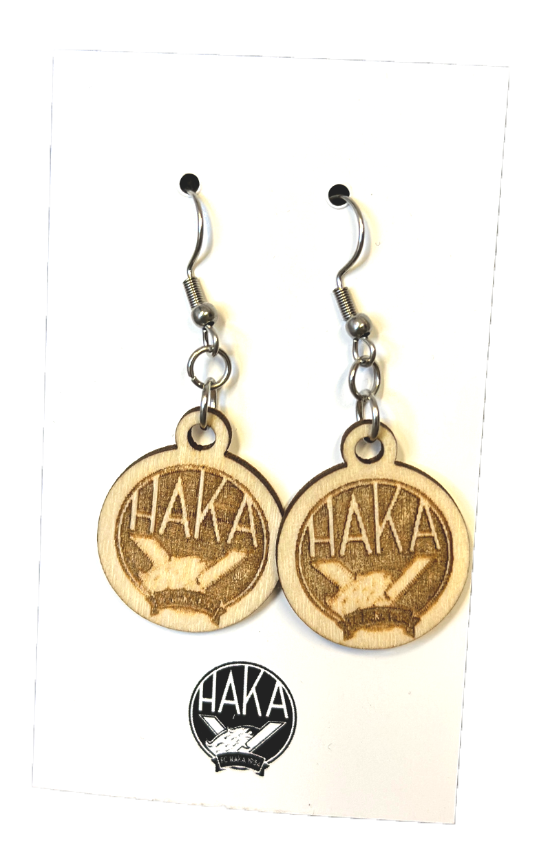 Uniikit käsityönä tehdyt korvakorut Hakan logolla.