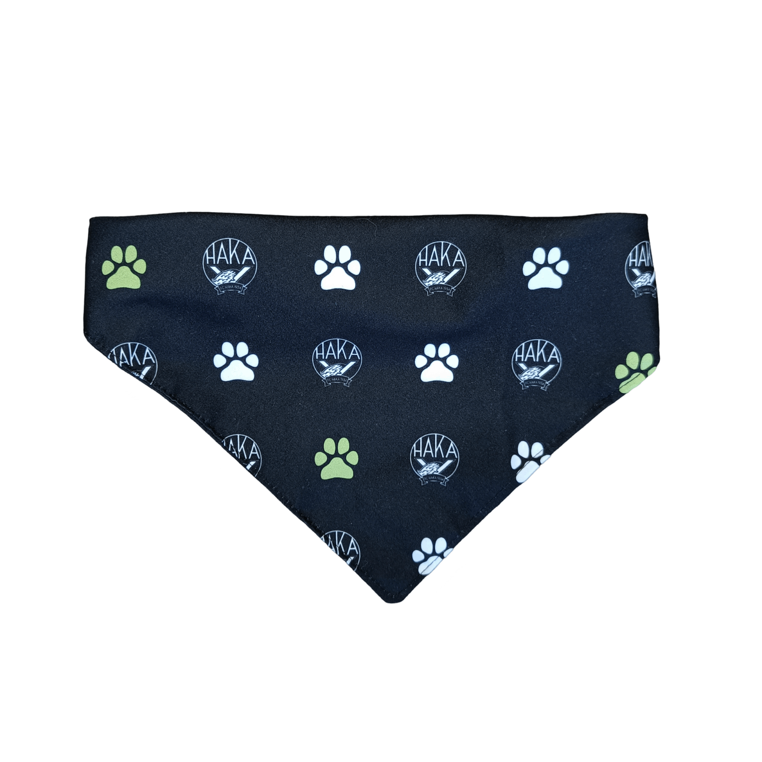 FC Hakan musta bandanahuivi lemmikeille, jota koristaa perinteiset FC Haka 1934 -logot sekä valkoiset ja vihreät tassunjäljet.