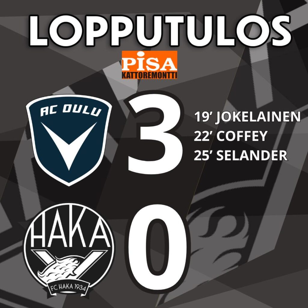 FC Haka matkasi lauantai -iltana AC Oulun vieraaksi Raatin stadionille Ouluun. Poissaoloista kärsineen koskilaisjoukkueen peli ei pysynyt kasassa ensimmäisellä jaksolla ja kotijoukkue kuittasi pisteet avausjakson kolmella osumallaan puhtaasti 3-0.