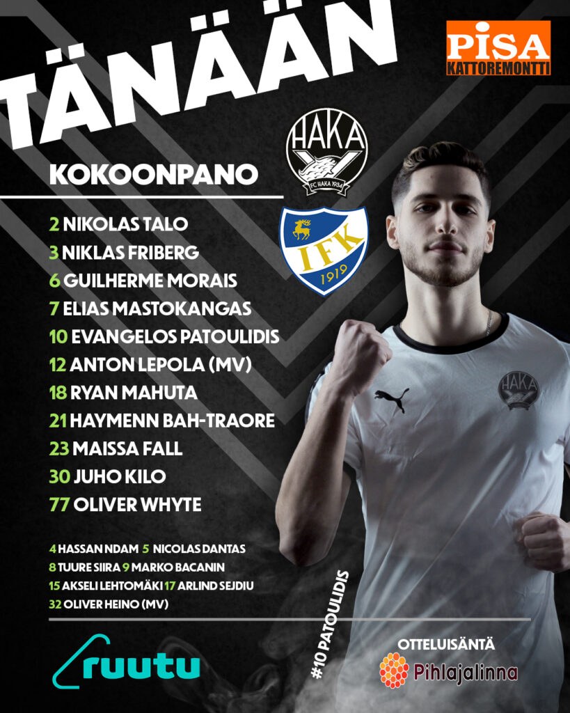 Kotijoukkueen kokoonpanossa oli muutama muutos edelliseen otteluun verraten, kun kapteeni Guilherme Morais teki paluun avaukseen pelikieltonsa jälkeen. Lisäksi niin ikään kapteenistoon kuuluva Niklas Friberg oli avauskokoonpanossa tutulla paikallaan Nikolas Talon vierellä. Viime pelissä vasemmalla laidalla avannut Imani Lanquedoc oli loukkaantuneena ja laidoilla avasivat Evangelos Patoulidis sekä Elias Mastokangas, jotka pelasivat aiemmin totutusta poiketen eri laidoilla. Vaihto oli taktisesti äärimmäisen onnistunut, sillä vasemmalla viilettänyt Patoulidis iski ottelun molemmat maalit oikealla jalallaan.