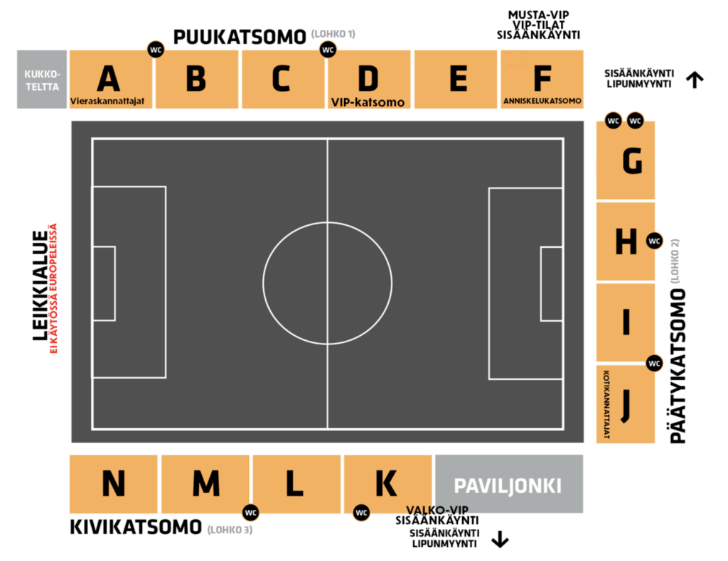 Puukatsomon D-katsomolohko toimii VIP-katsomolohkona (lue alempaa: VIP-palvelut)