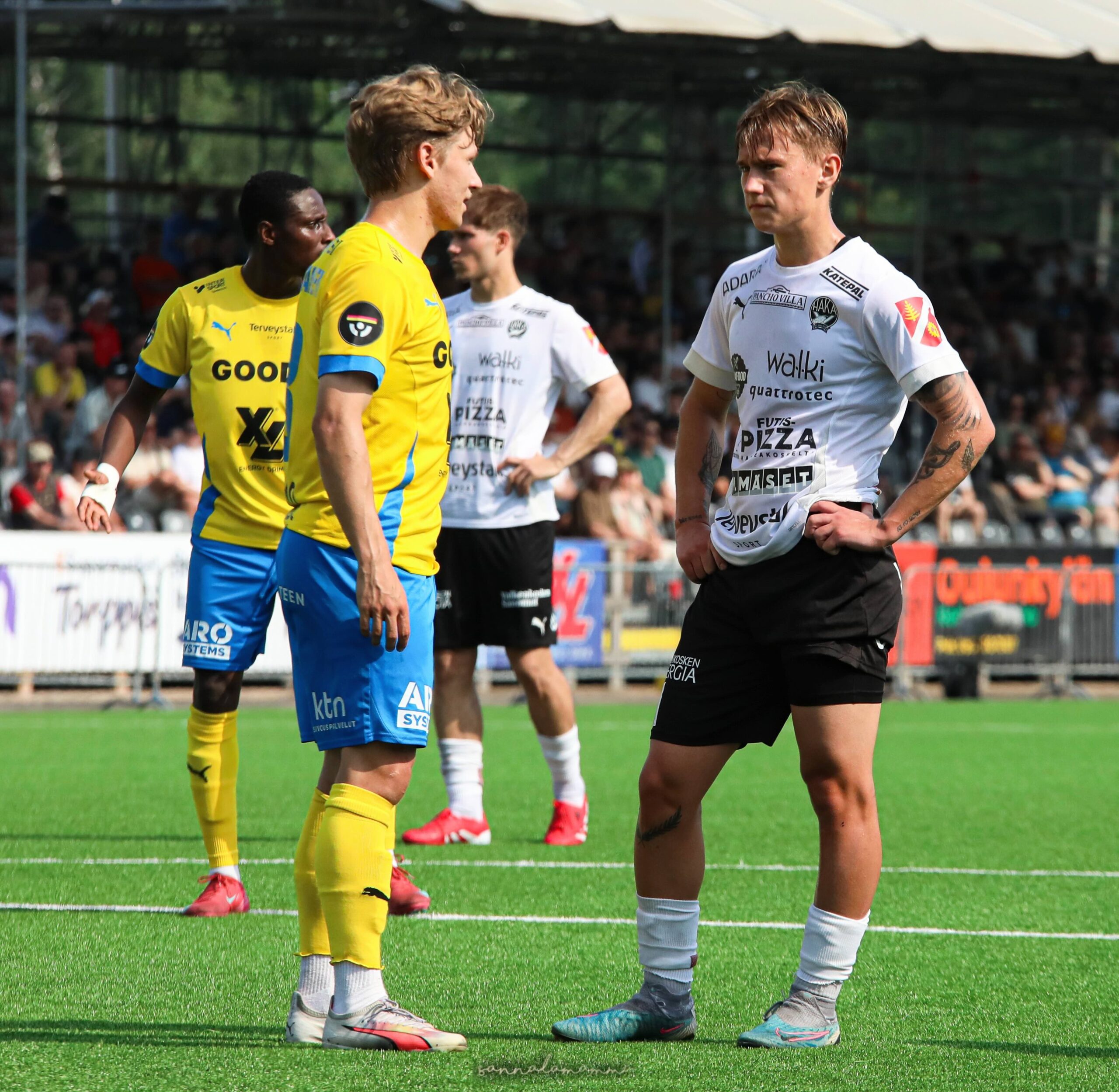 Haka -puolustuksessa täydet minuutit urakoinut Nikolas Talo oli toistamiseen epäonninen. Viikko sitten FC Interille vihellettiin rangaistuspotku käsivirheestä, vaikka pallo osui Taloa jalkaan. Tänään Talo blokkasi laukausta käsi aivan kiinni vartalossa, mutta siitä huolimatta erotuomari Matti Roth vihelsi pallon pilkulle. Pallon taakse astellut Tim Väyrynen tykitti pallon varmasti oikeaan Hughesin aavistaessa toiseen nurkkaan 71. minuutilla.