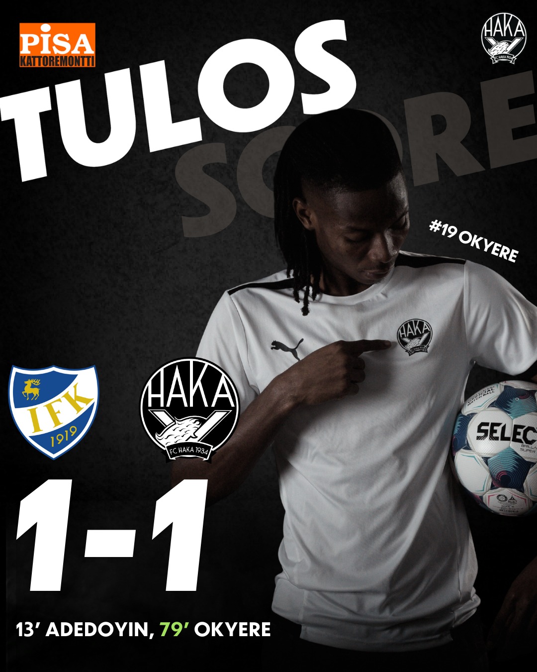 Almén pääsi osumaan Sejdiun keskitykseen juuri sen verran, ettei IFK-vahti Matias Riikonen ylttänyt siihen, ja Abraham Okyere oli tilanteessa hereillä ja syöksypuski pallon maalin kattoon.