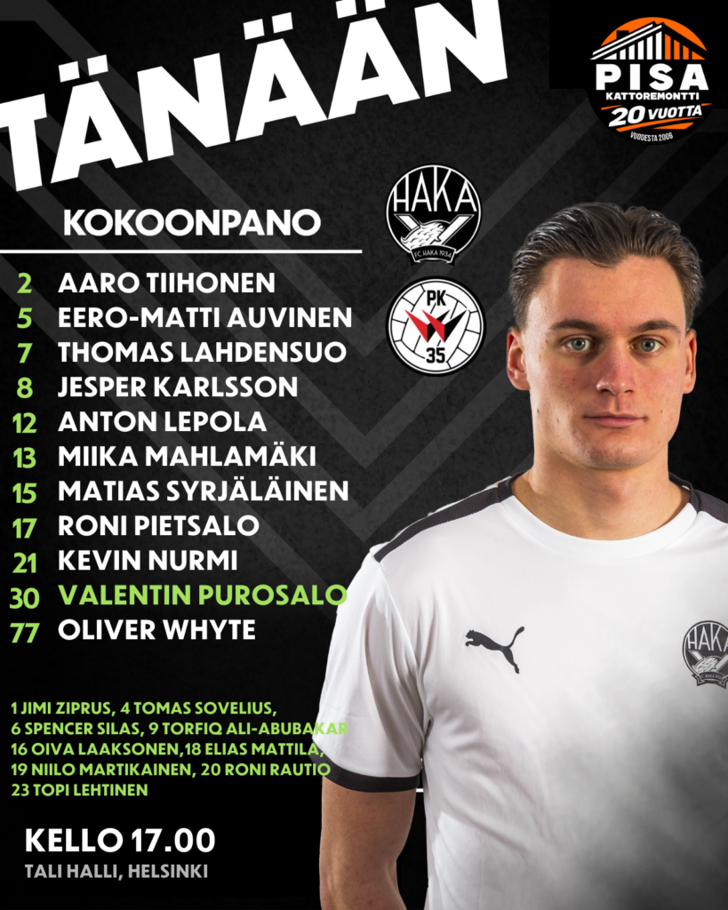FC Haka päätti Ykkösliigacupin runkosarjan Tali hallissa Helsingissä, missä pisteet jaettiin PK-35:n kanssa 1-1 -tuloksella.