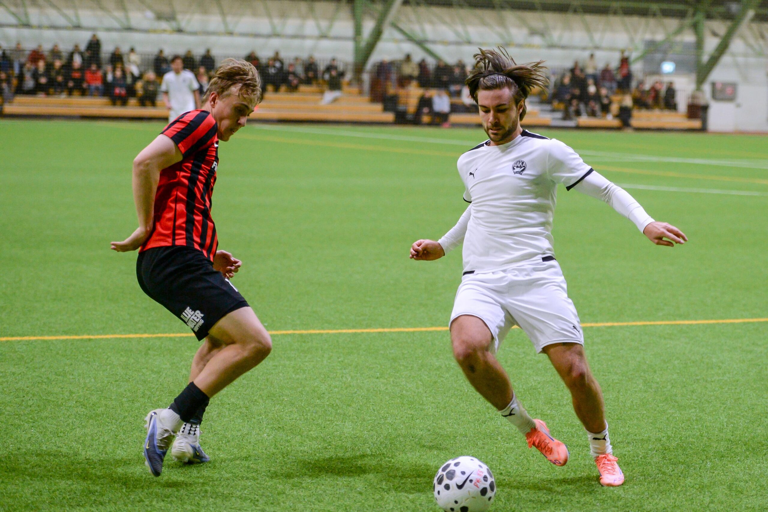 Vahvasti läpi ottelun esiintynyt Haka meni ottelussa nopeasti johtoon, kun Thomas Lahdensuo tykitti laakapallon aivan takylänurkkaan kulmapotkun jälkitilanteesta 12. minuutilla.