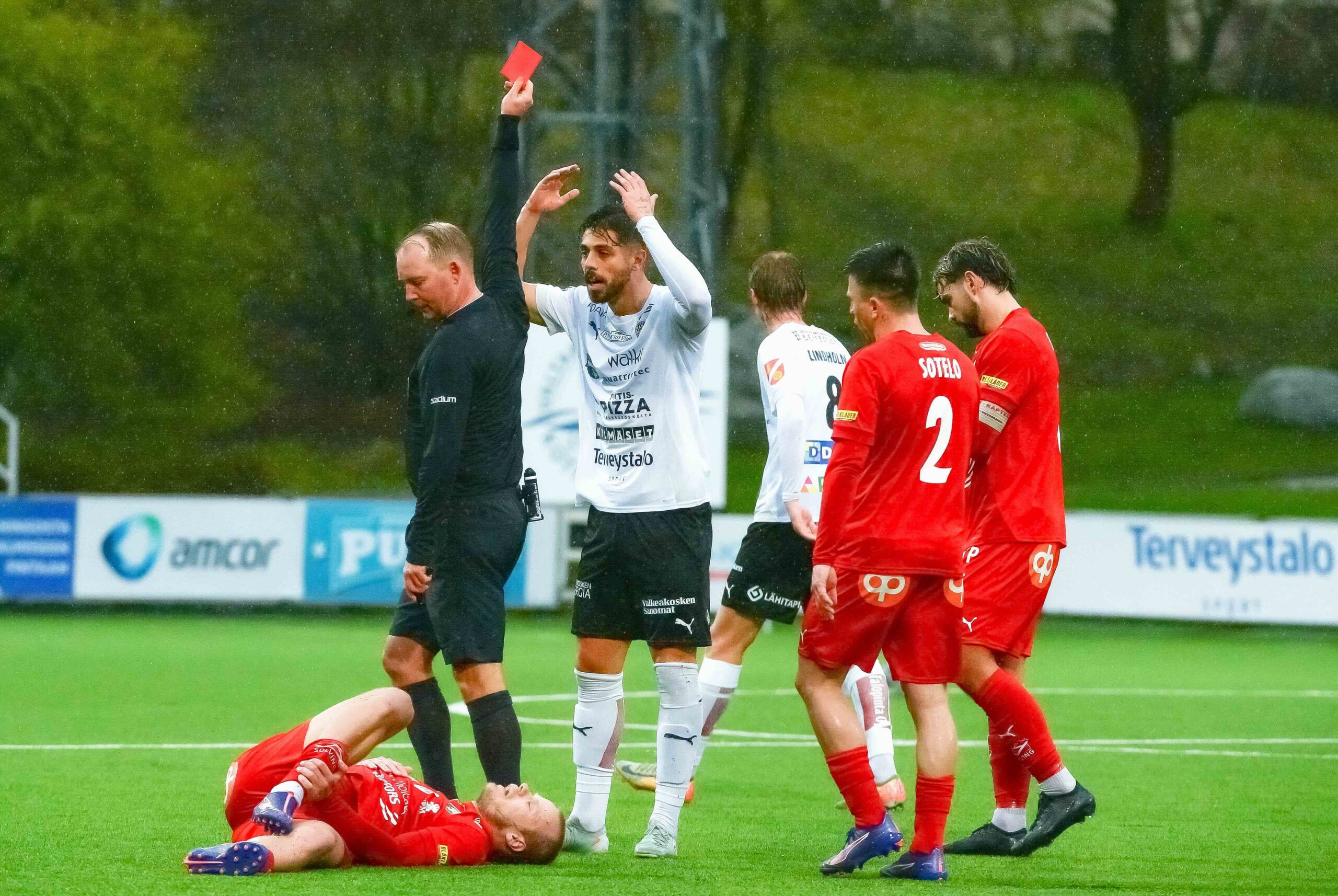 Hakalle tuli toisella jaksolla myös hieman lisähaasteita, kun Niklas Fribergin loukkaannuttua kentälle vaihdettu Nicolas Dantas katseli punaista korttia 87. minuutilla tultuaan pallontavoittelutilanteeseen turhan kovalla voimalla.