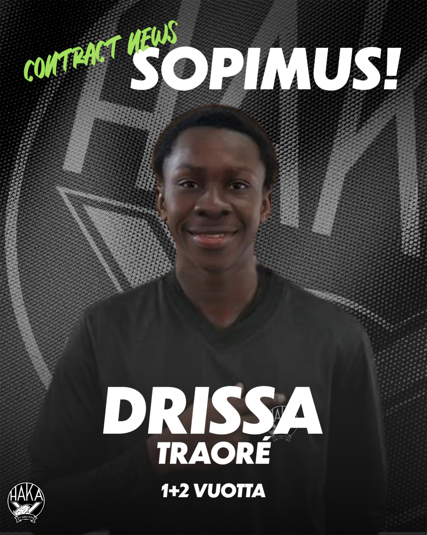 FC Haka ja 19-vuotias keskuspuolustaja Drissa Traoré ovat allekirjoittaneet pelaajasopimuksen tästä kaudesta, joka pitää sisällään option myös kahdesta tulevasta vuodesta.
