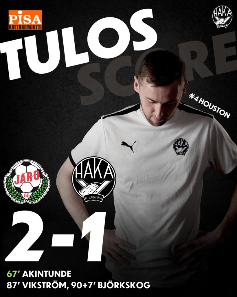 Pelikellon lähestyessä 90 minuuttia, moni Haka-kannattaja varmasti jo pidätti hengitystään ja odotti kauan kaivatun voiton vihdoin tulevan. Toisin kuitenkin kävi, kun Jaron 18-vuotias Rudi Vikström laukoi oikealla jalallaan boksin sisällä hänelle pudonneen pallon verkkoihin.