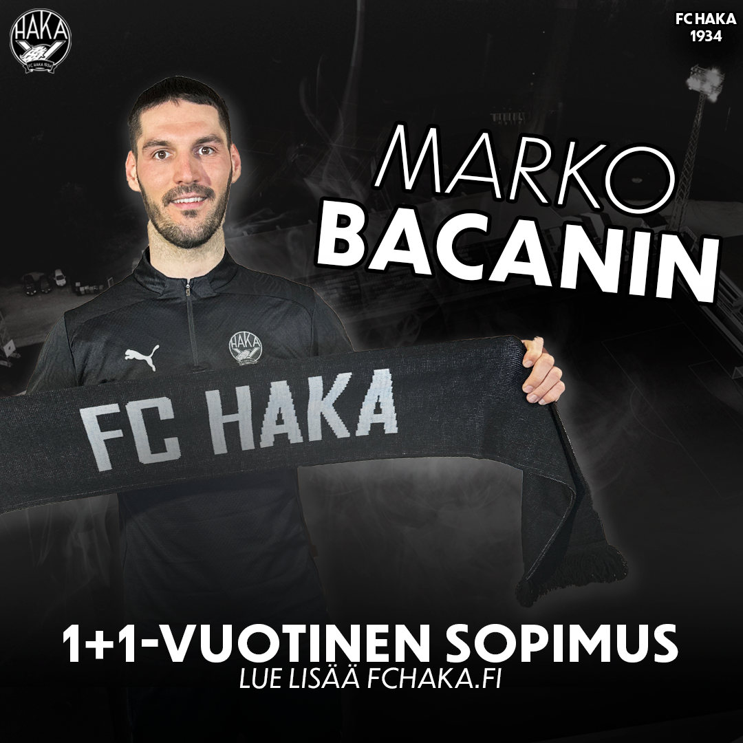 FC Haka on tehnyt vajaan kuukauden ajan testissä olleen serbialaishyökkääjä Marko Bacaninin kanssa 1+1 -vuotisen pelaajasopimuksen.