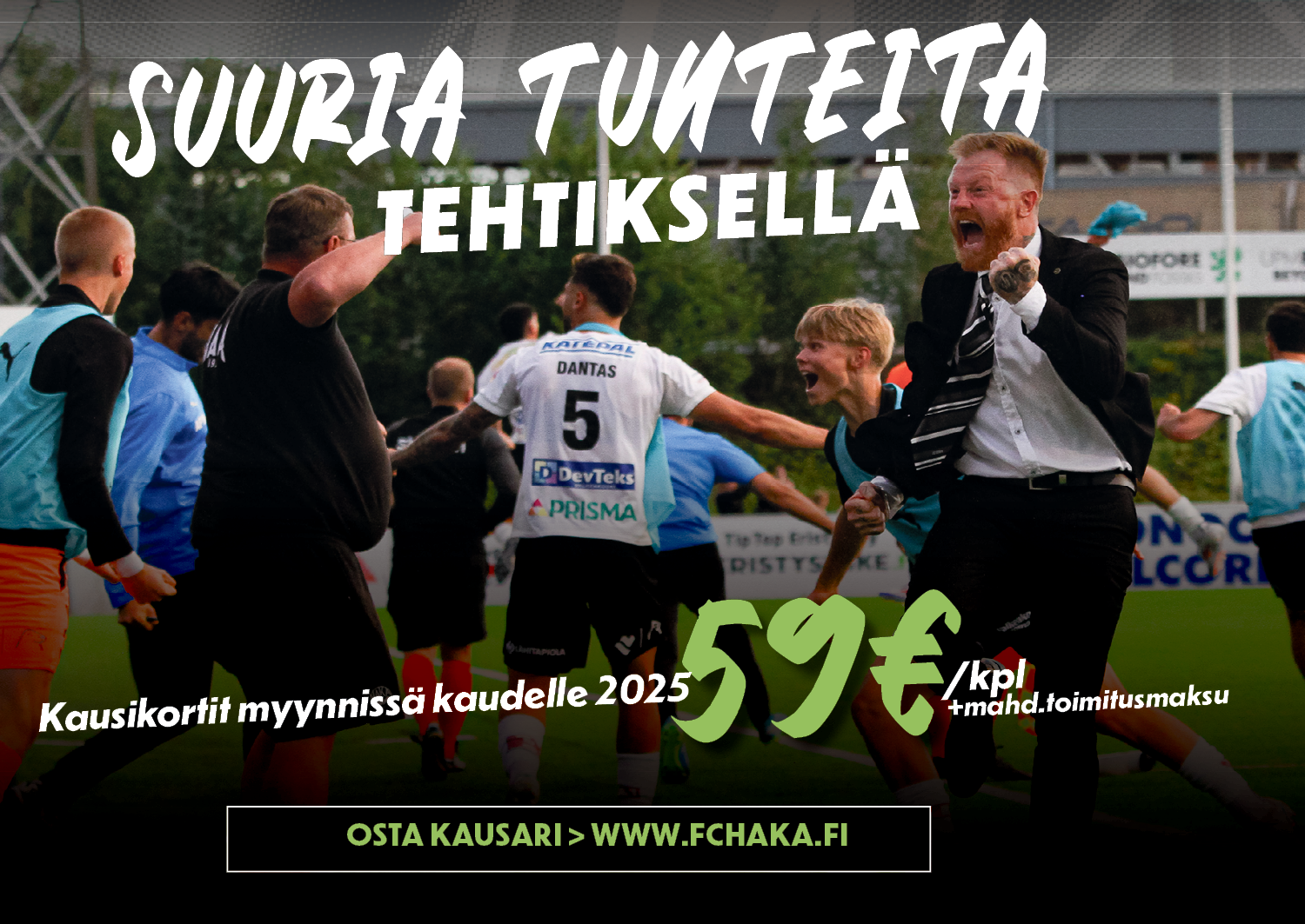 FC Hakan suosittu kausikorttikampanja on saanut positiivisen vastaanoton ja kerännyt paljon kiitosta Haka-yhteisöltä sekä kerännyt myös valtakunnallista mielenkiintoa. Yleisön pyynnöstä olemmekin päättäneet jatkaa kampanjaa, jotta mahdollisimman moni pääsee nauttimaan tulevasta kaudesta Tehtaan kentällä.