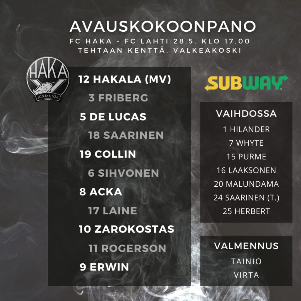 Pari minuuttia tämän jälkeen Hakalla oli kaksi loistavaa paikkaa avausmaaliin. Ensin Rogerson pääsi ajamaan vasemmalta keskelle vetopaikkaan, mutta Reguero venytti pallon tolpan juuresta kulmaksi. Kulmapotkua meni antamaan Elias Collin, joka pelasi pallon lyhyenä Janne-Pekka Laineelle, sai pelivälineen takaisin ja ajoi itsensä vetopaikkaan. Puolustajan Veikkausliigan avausmaali jäi kuitenkin vielä odotuttamaan, sillä tulinen vasemman jalan laukaus helähti ylärimasta maalipotkuksi.