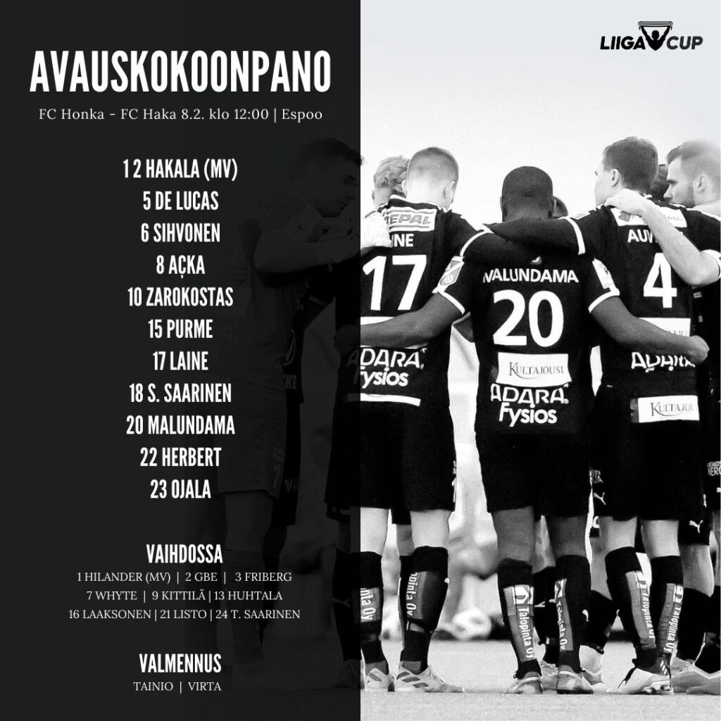 FC Haka kohtasi FC Hongan Liigacupin avauksessa Esport Arenalla tiistaina kello 12.00. Ottelu oli molemmille ensimmäinen kilpailullinen ottelu tällä kaudella ja se näkyi myös joukkueiden otteissa. Lopputuloksena päiväottelussa oli 1-1, mikä maistui varmasti enemmän Hakalle, joka nousi aivan lopussa tasoihin Janne-Pekka Laineen upealla kaukolaukauksella!