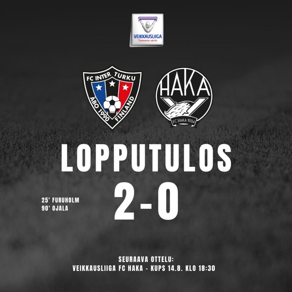 FC Haka ja FC Inter kohtaisvat edellisen kerran Tehtiksellä vain tasan kaksi viikkoa sitten, ja tänään joukkueet kohtasivat toistamiseen Turun Veritas Stadionilla. Vaikka tällä kertaa aivan samanlaista ylivoimaa ei turkulaisilta nähtykään, niin parempi joukkue voitti ja täsmälleen samoin 2-0 -lukemin.
