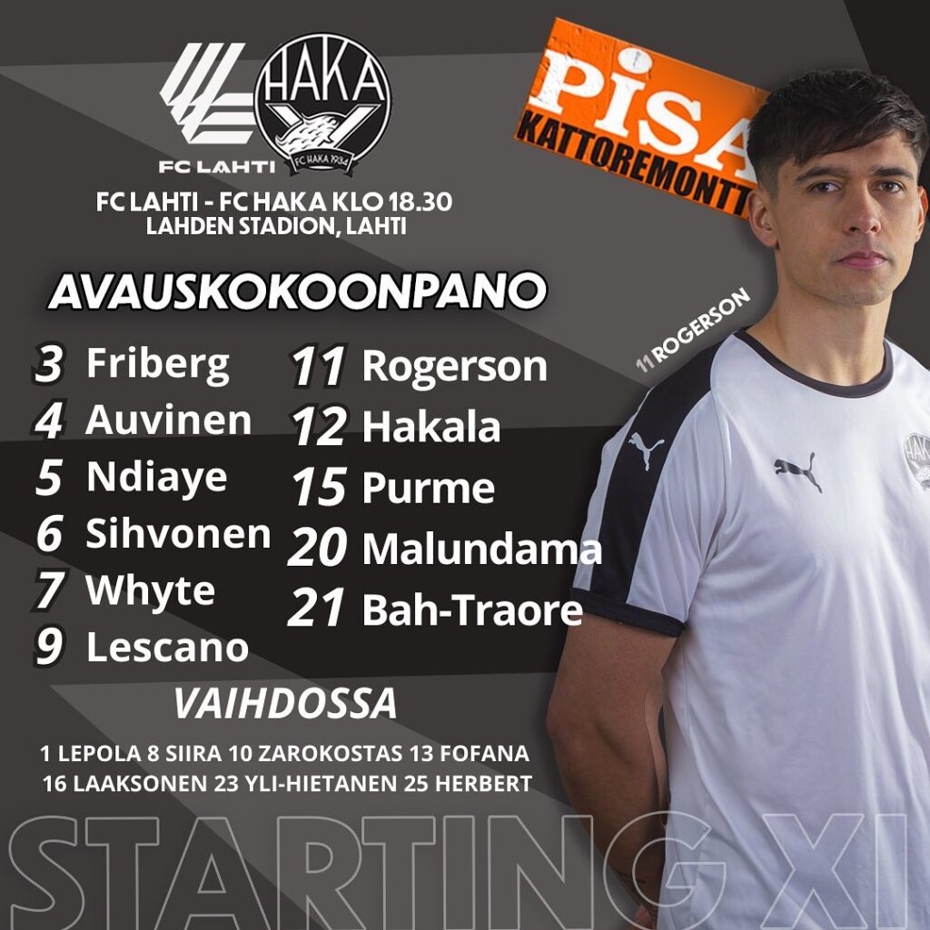 Hakan kaksi lähes varmaa avauskokoonpanon pelaajaa, Janne-Pekka Laine ja Ryan Mahuta, olivat sunnuntain ottelusta sivussa korttitilin täyttymisestä johtuen. Lisää harmaita hiuksia tuli ensimmäisen jakson lopulla, kun keskikentän Tino Purme loukkaantui. Ensimmäisellä jaksolla niin ikään kovia kokenut Henri Malundama niin ikään vaihdettiin puoliajalla sivuun.
