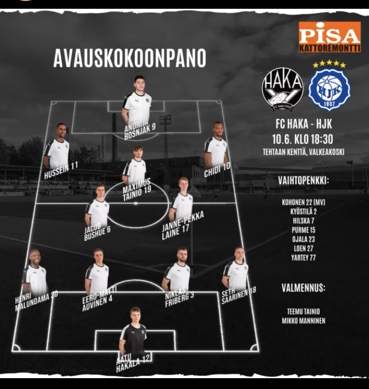 Haka haki ottelun loppuun asti tasoitusta raivoisasti, mutta loistavaa esitystä ei tällä kertaa palkittu edes pisteellä, vaan täydet kolme matkasivat HJK:n mukana Helsinkiin.