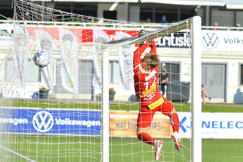Näin Veikkausliiga -debyyttinsä pääsi tekemään nuori Aatu Hakala, joka esiintyikin ottelussa erittäin ennakkoluulottomasti koskilaisten maalin suulla.