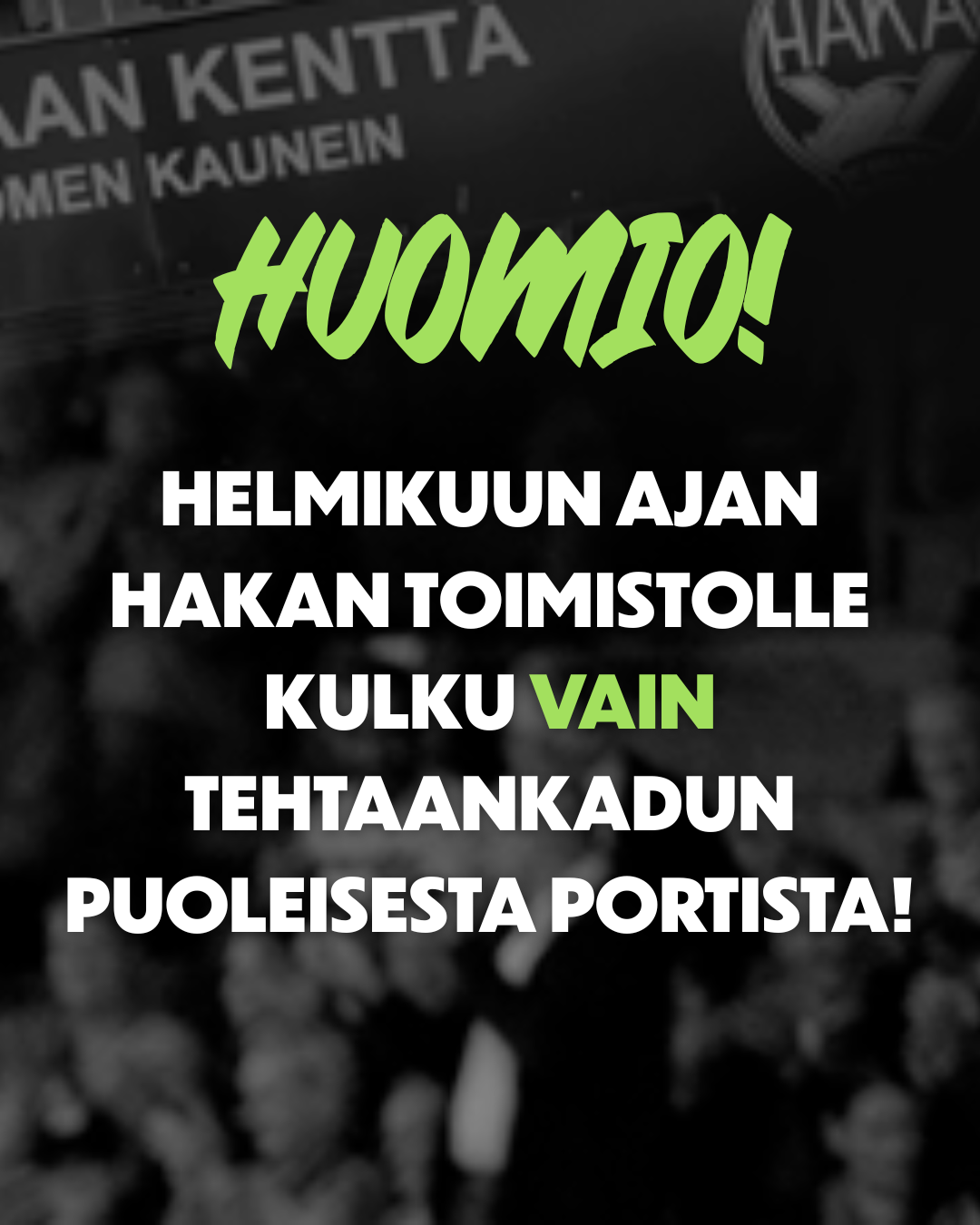 Huomioittehan tämän erikoisjärjestelyn vieraillessanne Hakan toimistolla helmikuun aikana. Kiitos ymmärryksestä!