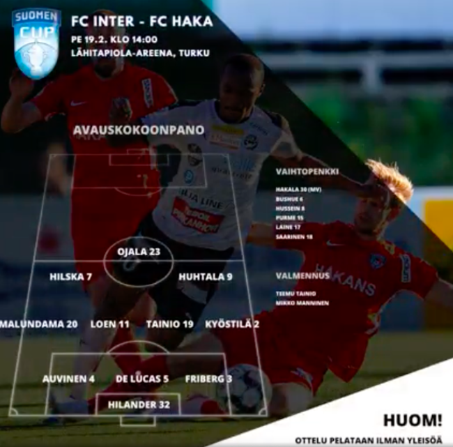FC Haka ja FC Inter päättivät Suomen Cupin alkusarjansa perjantain päiväottelussa Turun Lähi-Tapiola Areenalla, missä Inter vei ottelun niukasti nimiinsä Taiki Kagayaman maalilla 1-0.