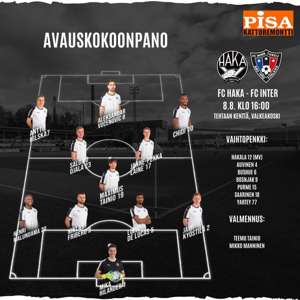 Haka ja Inter kohtasivat sarjan alkukierroksilla toukokuussa, jolloin Inter oli maalin verran parempi (2-1). Hakalla oli tiukka ote kiinni vähintään yhdessä pisteessä, pelissä jossa mm. Luiyi de Lucasin puskumaali hylättiin ja lopulta viimeisten hetkien voittomaali turvasi pisteet Turkuun. Ei ollut syytäkään, miksi Haka ei olisi voinut tuottaa yhtä vakuuttavaa peliesitystä nytkään ja olla kiinni kotivoitossa.