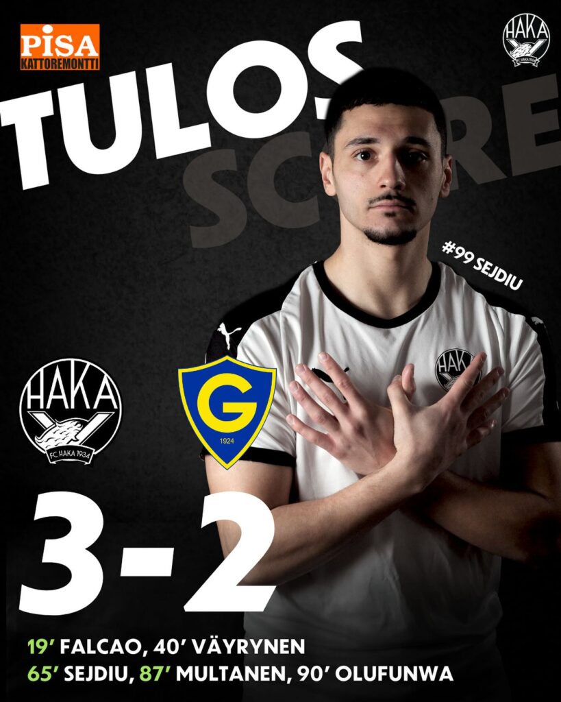 Toisella jaksolla Haka laittoi isompaa vaihdetta silmään ja kaivattu johto-osuma syntyi hieman onnekkaastikin 65. minuutilla. Arlind Sejdiu pelasi vahvan nousunsa jälkeen pallon Jean-Pierre Da Sylvalle, joka haki vasurinsa vapaaksi ja yrittäen sijoittaa takanurkkaan. Hyvää liikettään boksiin jatkanut Sejdiu yritti väistää laukauksen, mutta ei onnistunut, vaan pallo muutti hyökkääjään päästä suuntaa ja painui oikeaan alanurkkaan.