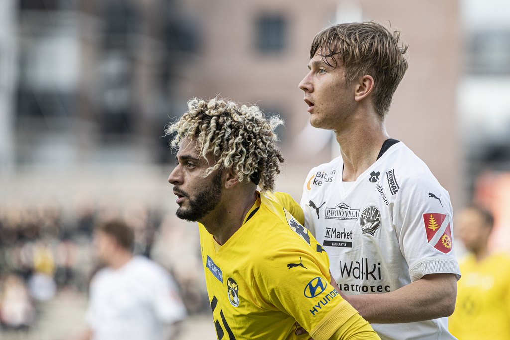 Ottelun avausmaalista vastasi Tim Väyrynen 28. minuutilla. Pohjustuksen osumaan teki käsittämättömän helposti omalta alueelta pallon kanssa nousemaan päässyt Diogo Thomas. Hakassakin pelannut toppari toi palloa puoleen kenttään, käytti sen laidalla ja jatkoi juoksuaan kohti päätyä, mistä pallon saatuaan syötti sen maalin etunurkalle nousseelle Väyryselle. Jos Thomas pääsi vapaasti nousemaan, niin samoin Väyrynen tuli Haka -toppareiden välistä palloon ja ohjasi sen ”takavasaralla” etukulmasta sisään.