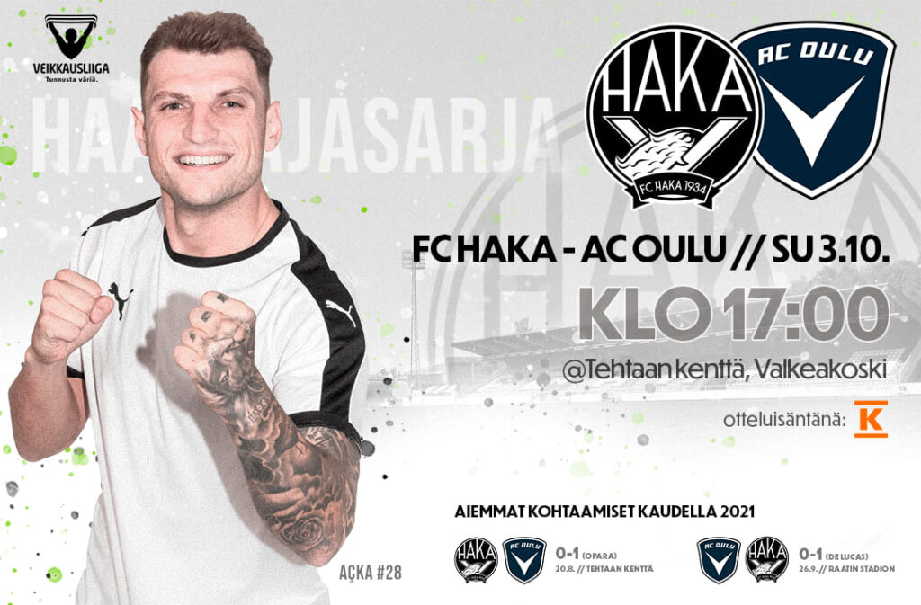 Kotiyleisöä tarvitaan taas sunnuntaina, kun ottelussa on isot panokset. Hakalla on karsijan paikalle kuusi pistettä eroa, mutta oululaisten voitolla ero kaventuisi kolmeen ja loppukaudesta tulisi äärimmäisen jännittävä. Voitolla Haka nousisi taistelemaan jopa Haastajasarjan voitosta.