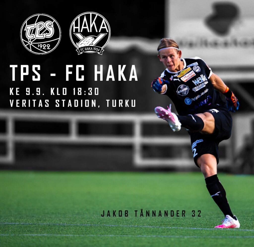 TPS – FC Haka keskiviikkona 9.9. Turun Veritas Stadionilla kello 18.30 alkaen.