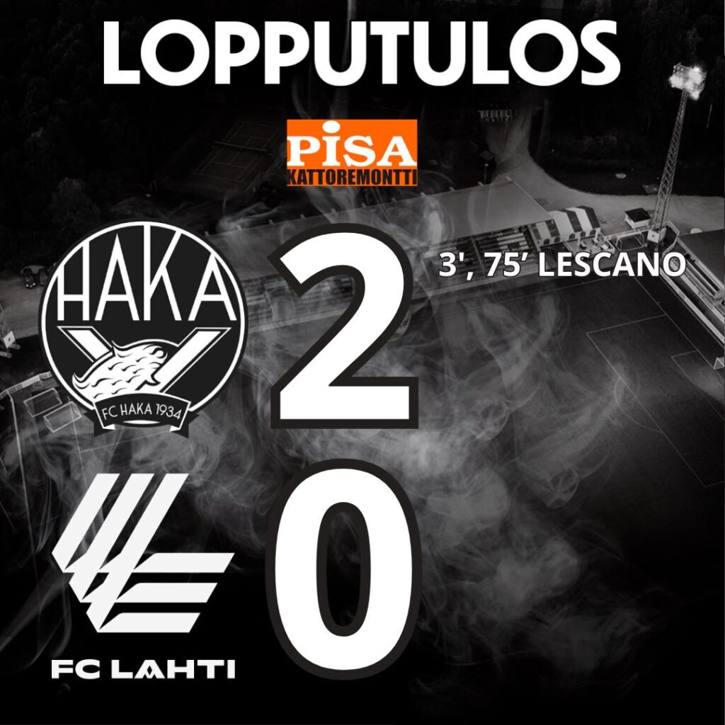 FC Haka otti sunnuntai -iltapäivässä tyylipuhtaan 2-0 -voiton FC Lahdesta Tehtaan kentällä ja voitolla koskilaiset varmistivat Veikkausliigapaikan ensi kaudelle. Valkopaidat jatkoivat myös käsittämättömän pitkää tappiottomien kotiotteluiden sarjaa. Haka on ainoa joukkue Veikkausliigassa, joka ei ole hävinnyt kertaakaan kotikentällään tällä kaudella.
