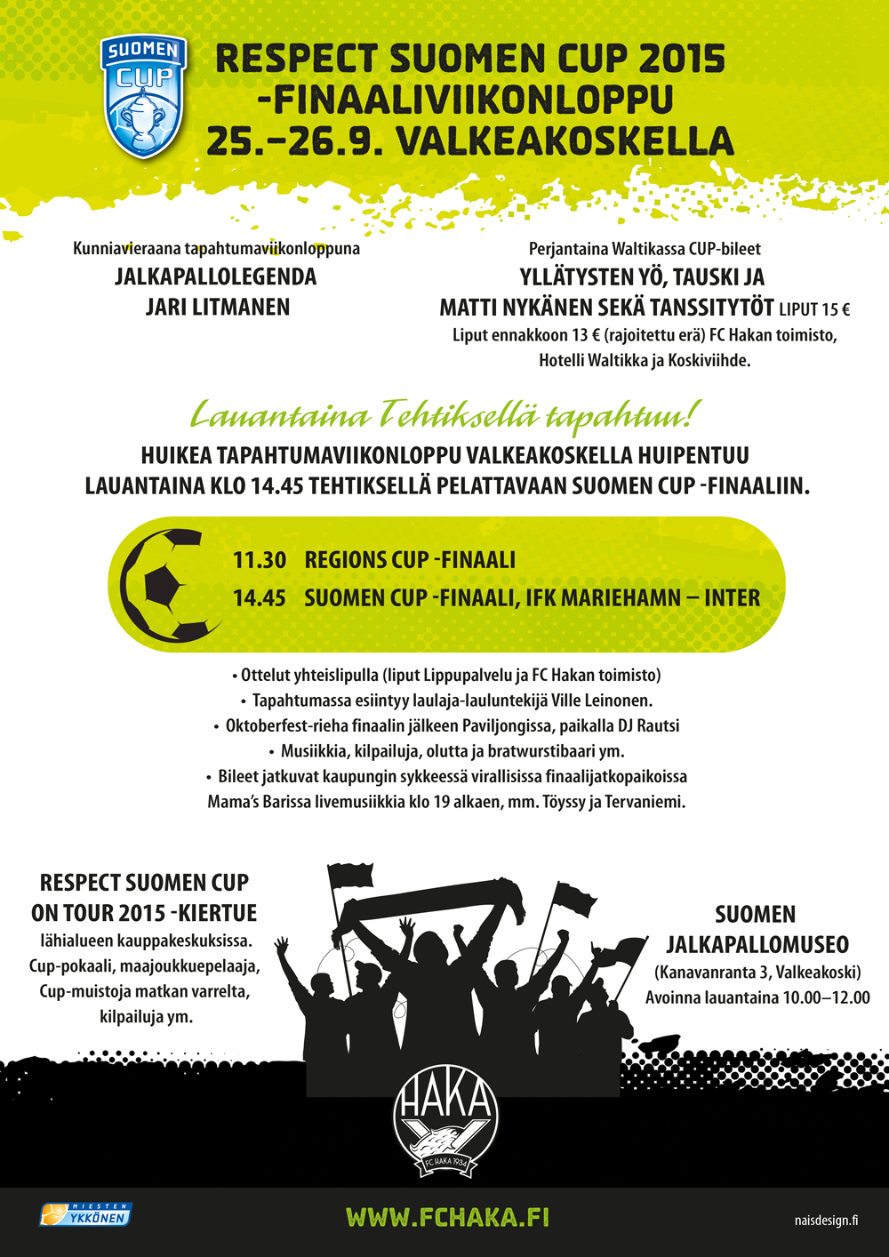 Tehtaan kentällä järjestetään lauantaina 26.9. Oktoberfest sujuvasti Suomen Cupin finaalin päätyttyä eli noin kello 17.