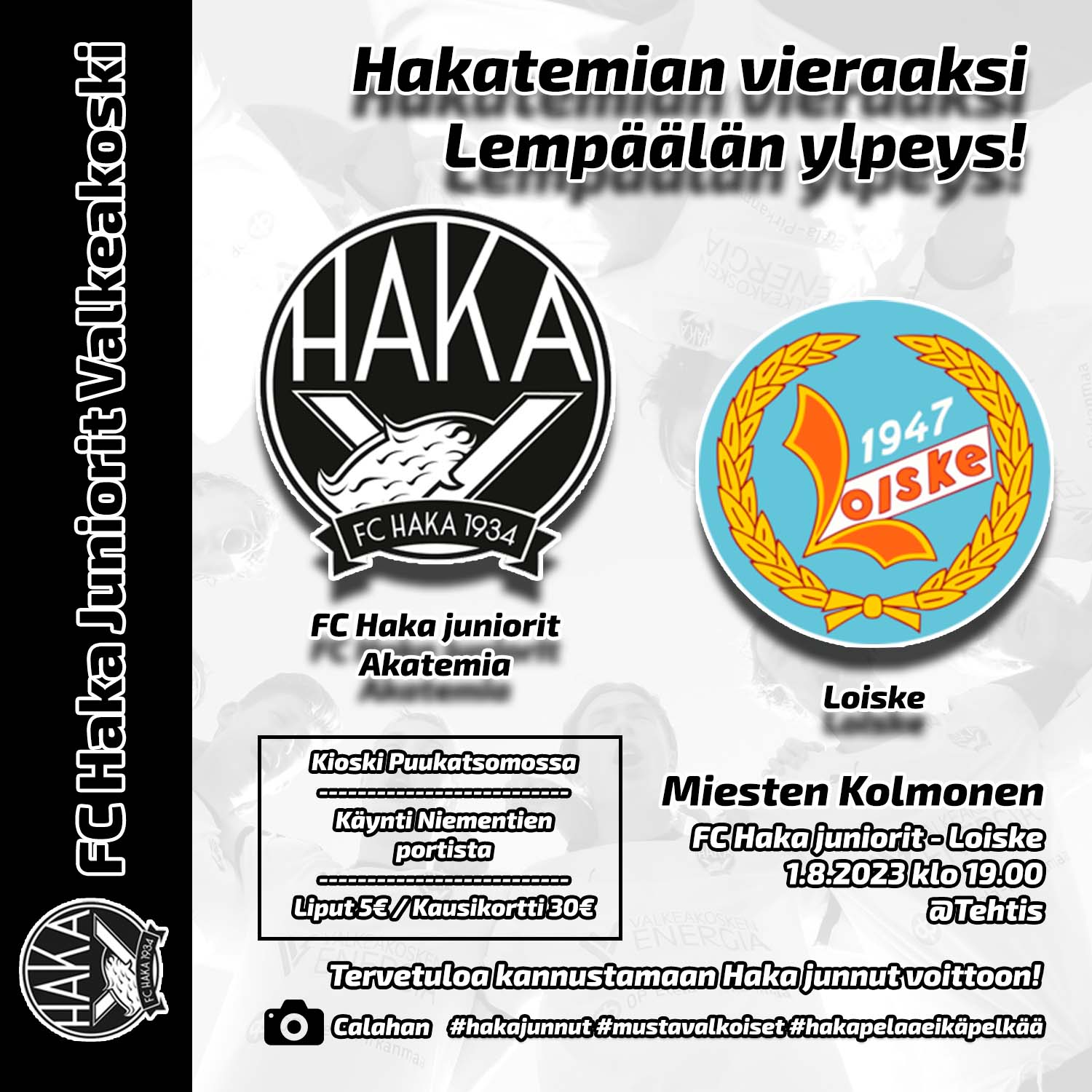 Hakatemia saa vastaansa syyskauden ensimmäisessä kotipelissä tiistaina 1.8.2023 Loiskeen. Ottelu alkaa tutusti klo 19 Tehtiksellä.