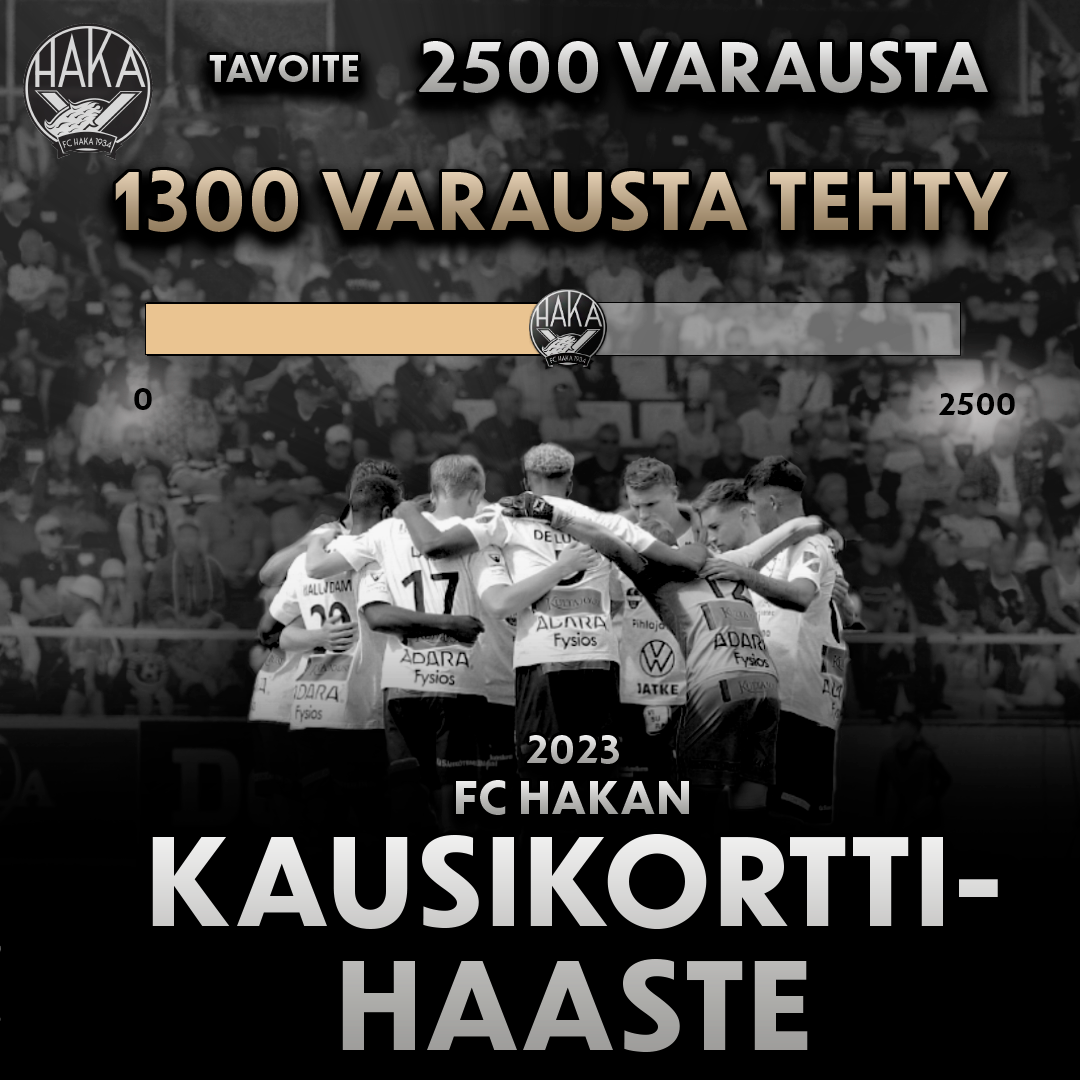 Kultajousi haastaa muut yritykset mukaan haasteeseen tekemään hyvää ja tulemaan mukaan rakentamaan kautta 2023! Kauteen 2023 lähtiessä seura on erinomaisessa tilanteessa – tällä kaudella FC Haka on tavoittanut Veikkausliigan neljännen sijan. Kokonaisuudessaan upean kauden ja yleisömäärien merkittävän kasvun kunniaksi FC Hakan kausikortin Veikkausliigakaudelle 2023 saa vain 69 eurolla, kun kausikorttihaaste toteutuu.