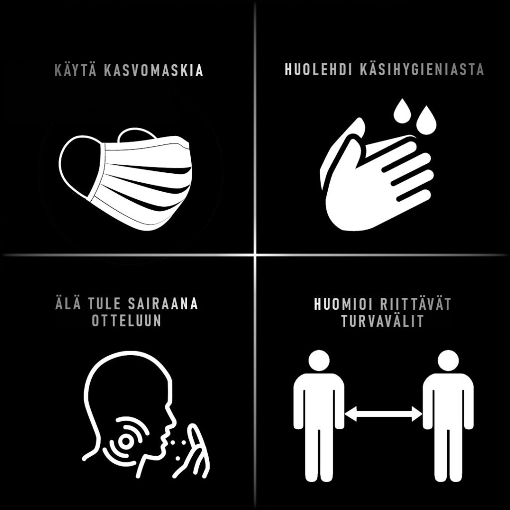 Kasvomaskin käyttö on edellytys ottelustadionille sisäänpääsyyn niin yleisön, kuin työskentelevän henkilökunnankin osalta.