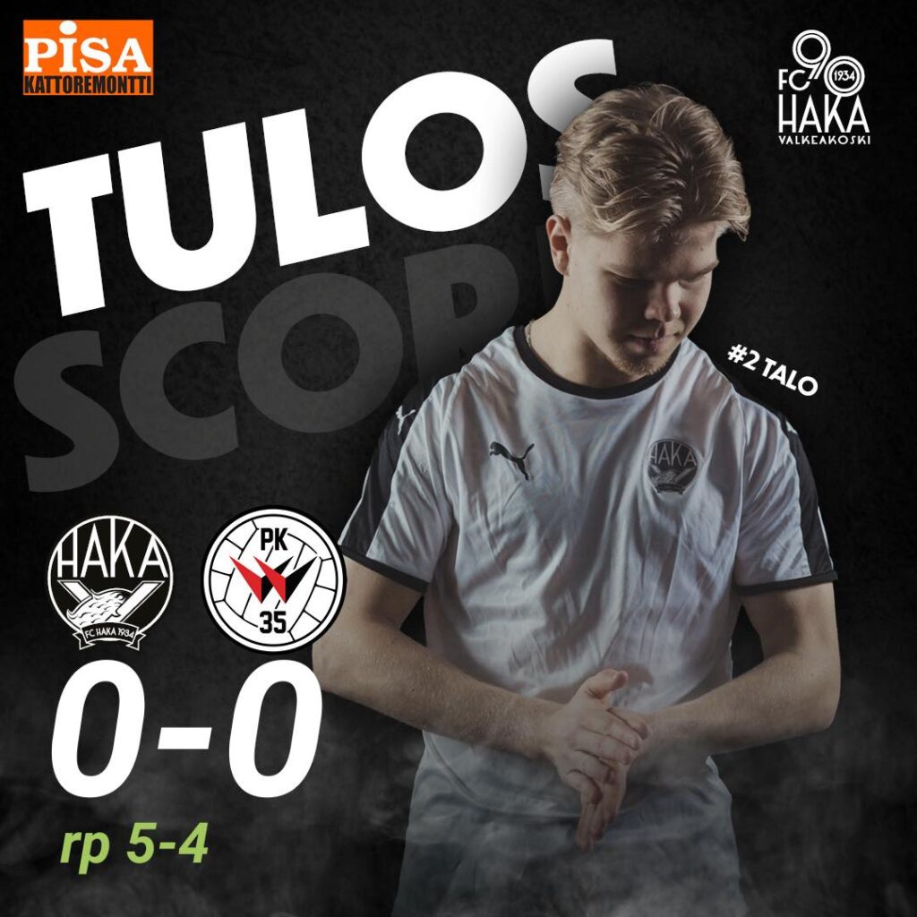 Vaikka Haka saikin toisella jaksolla, ja varsinkin loppua kohden koko ajan enemmän ja enemmän otetta peliin, niin maaleja ei kuitenkaan nähty. Varsinainen peliaika päättyi maalittomaan 0-0 -tasapeliin, mikä tarkoitti ratkaisun hakemista suoraan rangaistuspotkukilpailulla aivan kuten edellisessäkin Suomen Cupin pelissä Tehtaan kentällä vuonna 2022, jolloin Kuopion Palloseura eteni lopulta jatkoon.