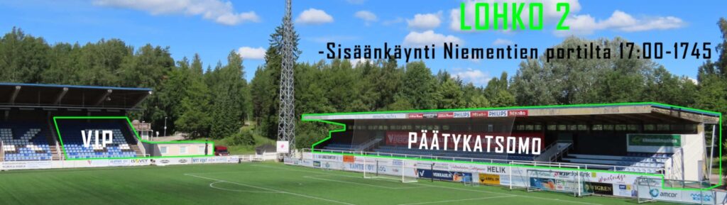 Lohko 2 kattaa päätykatsomon + VIP -alueen.