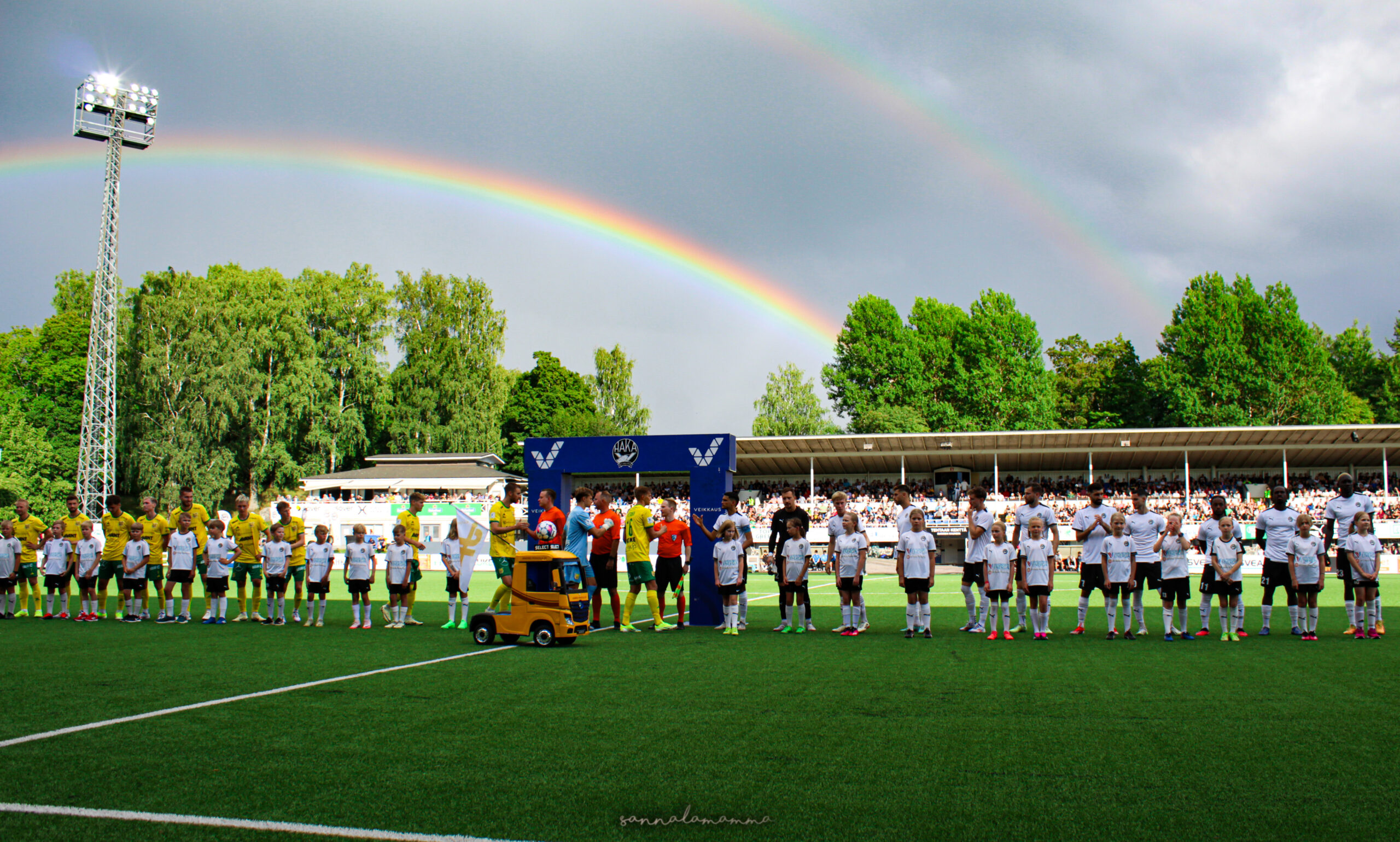 Ottelua ja juhlallisuuksia edeltänyt lyhyt sade ei onneksi jatkunut, ja taivaalle ilmestynyt sateenkaari osoitti, että onni löytyi sen päästä, Tehtaan kentältä. FC Haka kukisti rakkaan vihollisensa hurjin 4-3 lukemin. FC Hakan Evangelos Patoulidis sai Tehtaan kentän repeämään aivan täysin. Voitonjuhla kannattajien kanssa on hetkiä, mitkä jäävät ikuisesti mieleen. Koko päivän tapahtumat ovat kerrattuna täällä sekä otteluraportti kokonaisuudessaan täällä.
