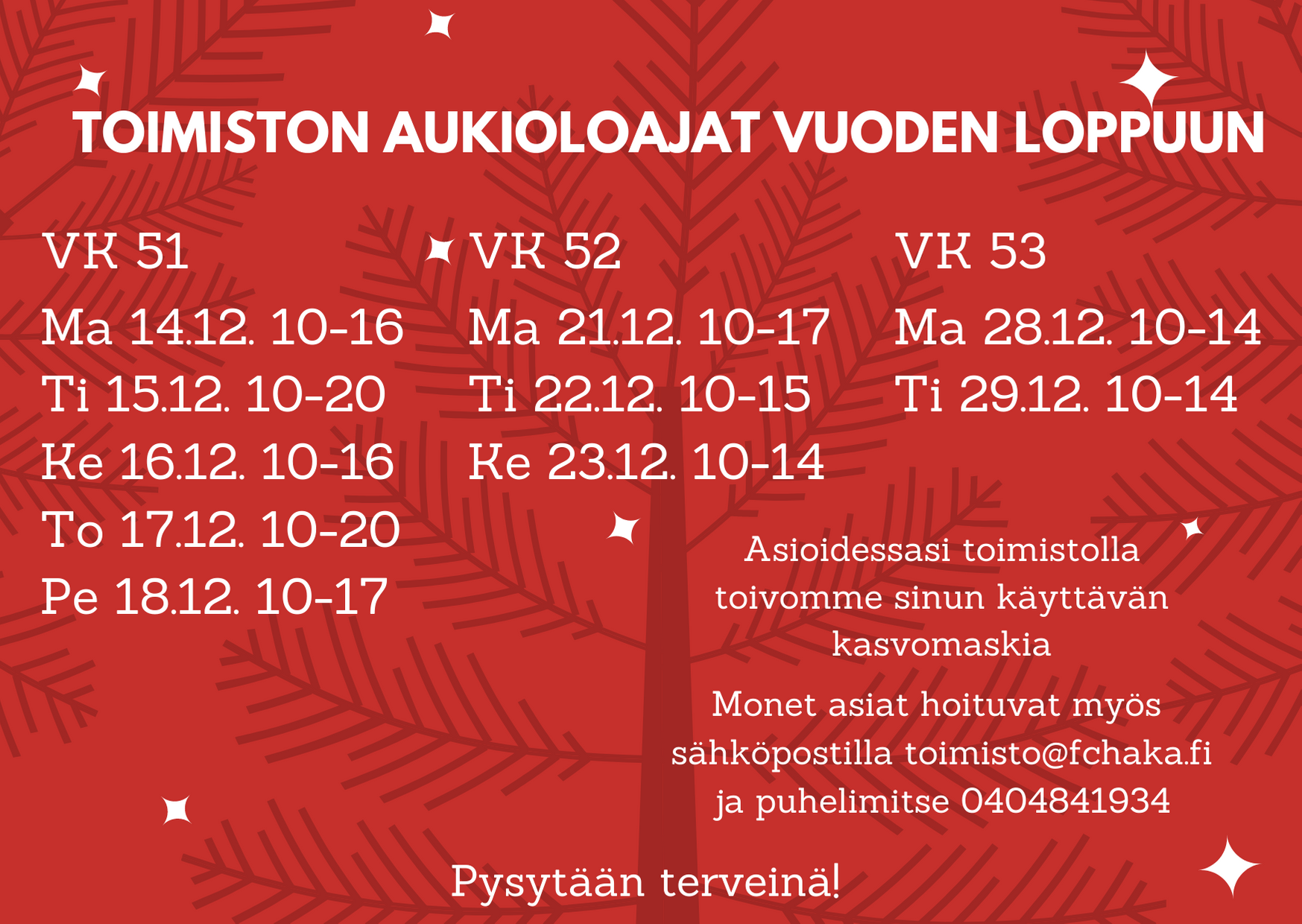 Toimiston aukioloajat vuoden loppuun