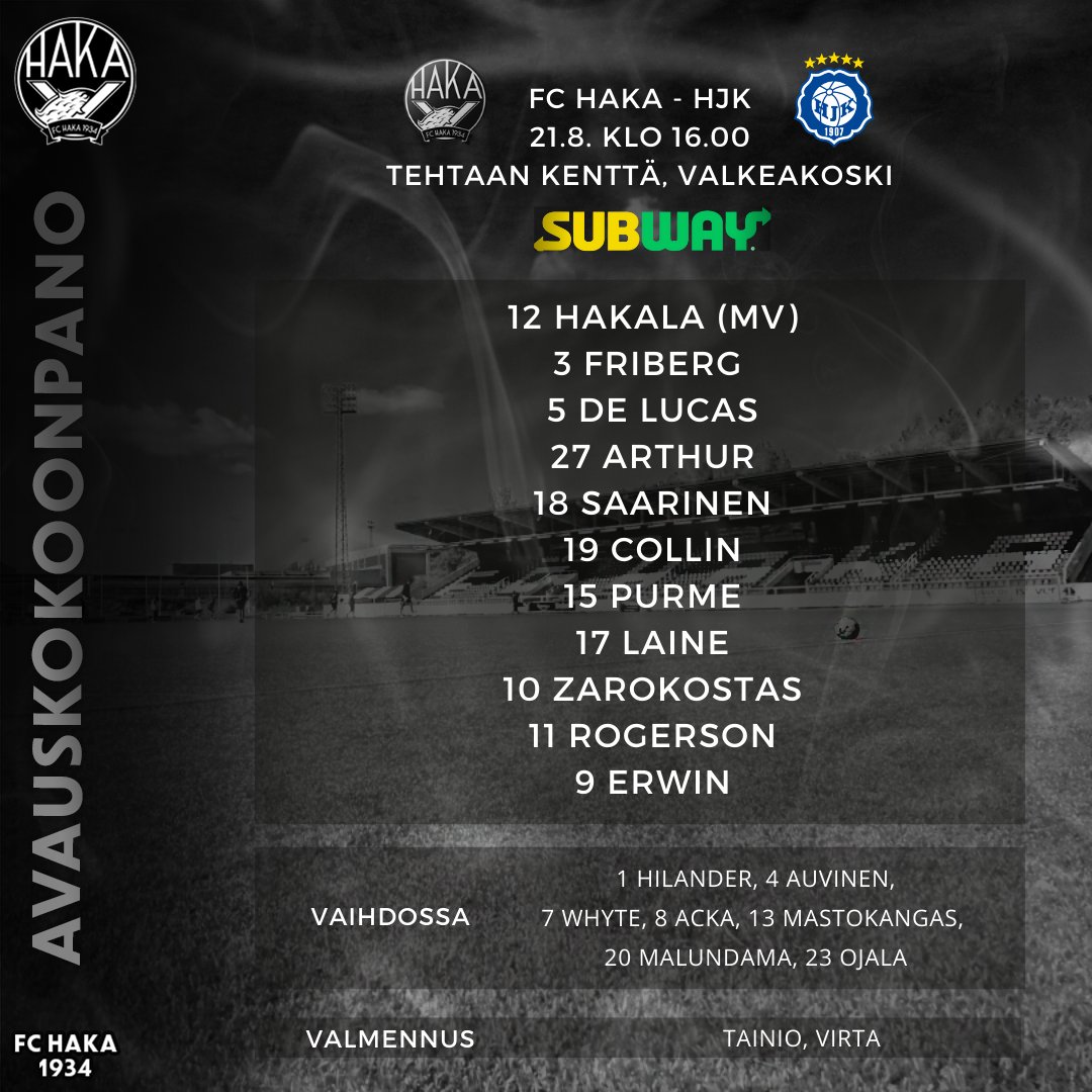 Testipelaajana Hakan hyökkäyksessä nähtiin Oskari Lehtonen, joka haki viime kaudella pelikokemusta Viron pääsarjasta Sillamäe Kalevin joukkueesta.